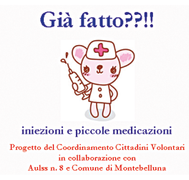 Il Progetto è stato pensato da Cittadini Volontari e sostenuto dal patrocinio del Comune di Montebelluna, e dell'ULSS 8, con il finanziamento del Centro Servizi di Volontariato di Treviso, per venire incontro a chi ha bisogno di una puntura o di piccole medicazioni, e non sa a chi rivolgersi. Infermiere/i professionali iscritti all'Albo prestano gratuitamente la loro opera. Il tutto si svolge dal lunedì al venerdì (17:30 ~ 18:30) nell'ambulatorio n. 4 Poliambulatorio dell'Ospedale di Montebelluna.